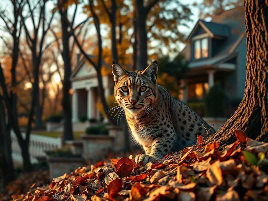 She peers out from the leaf-bottom woods, just across the lane from a stately home. It’s safe here, in her little square block lair, the only luxury forested lot left in an exclusive new subdivision. The autumn shadows are her friends, and she is active only at night. It’s a livable arrangement; she literally blends in.