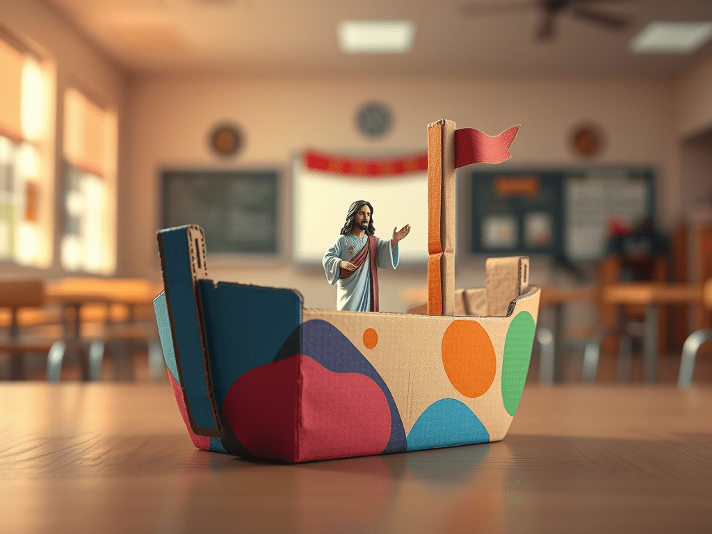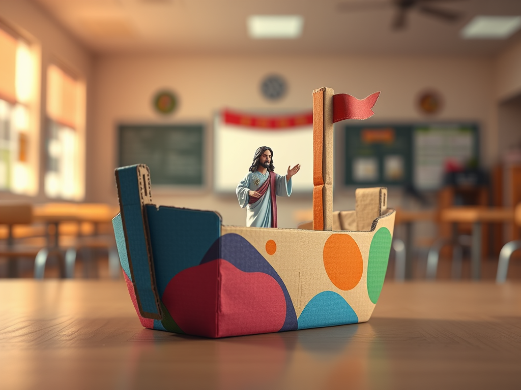 It was a carefully created cardboard boat, made from a breakfast serving container, and glued down right in the center of it was a miniature Jesus!